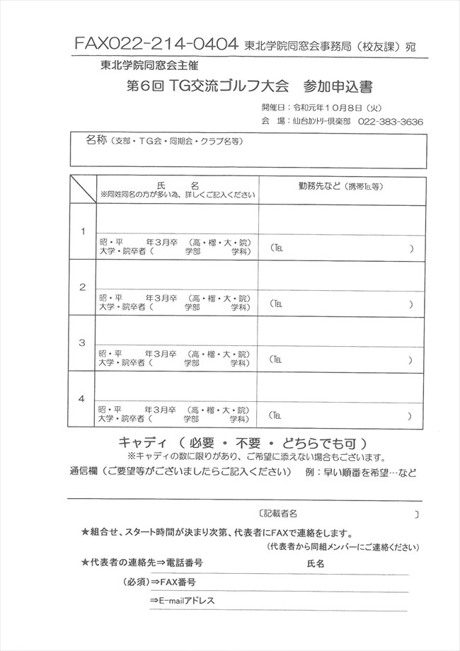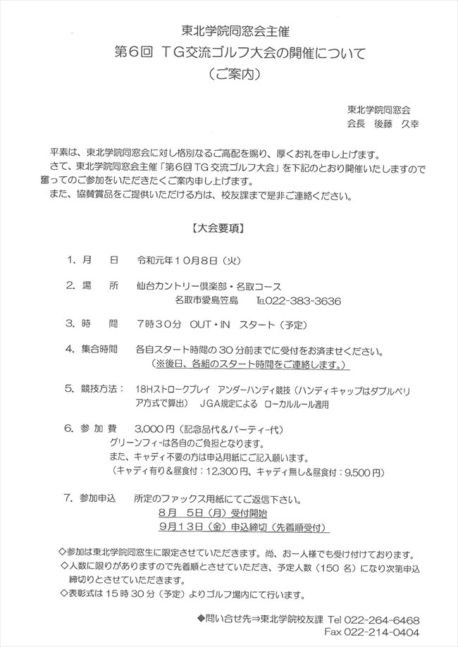 東北学院同窓会主催 第6回TG交流ゴルフ大会のご案内